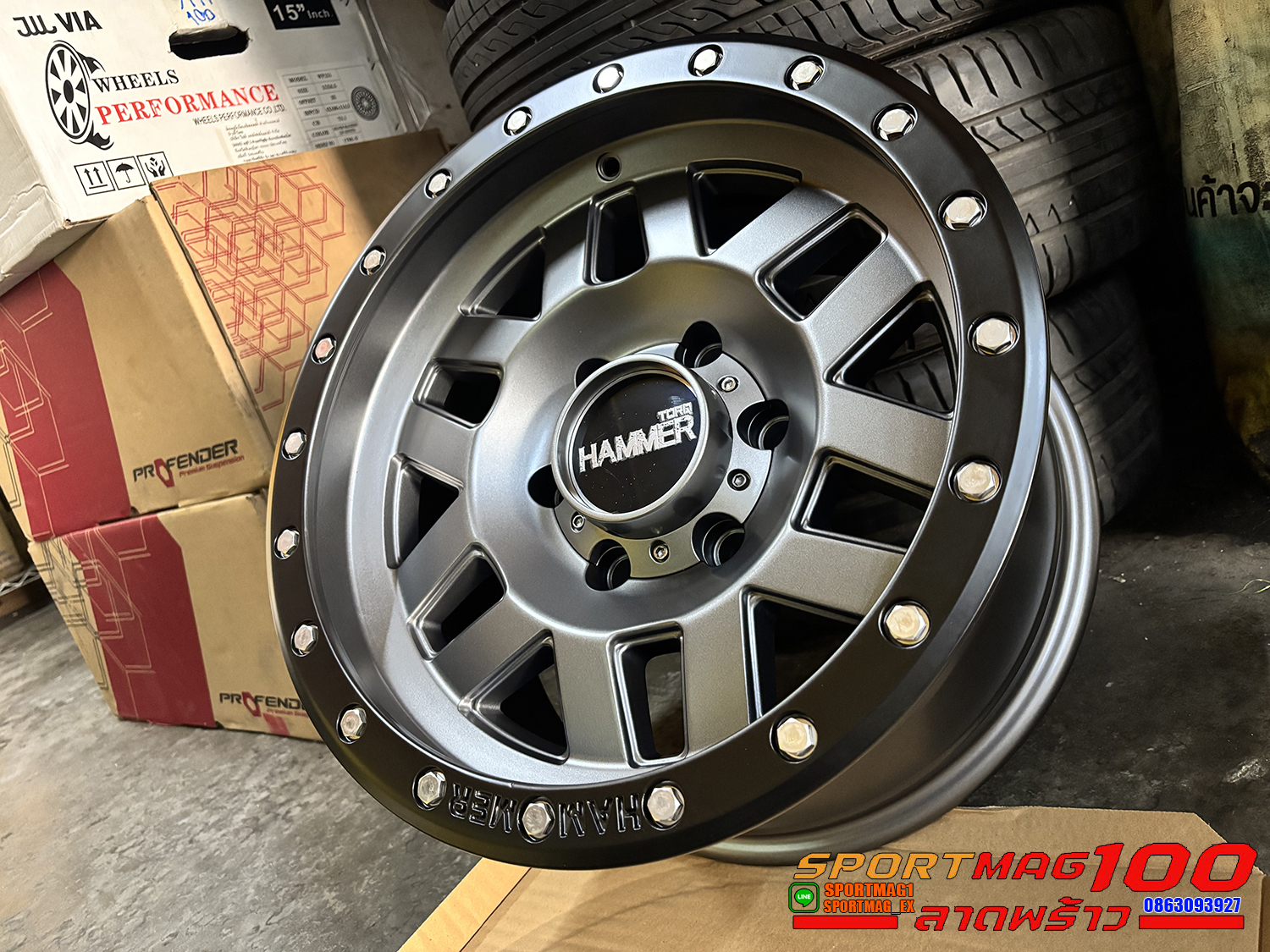 อัลบั้มล้อแม็ก HAMMER HM2 ขอบ16นิ้ว กว้าง8.5นิ้ว 6รู139.7 Offset0 สีเทาขอบดำ