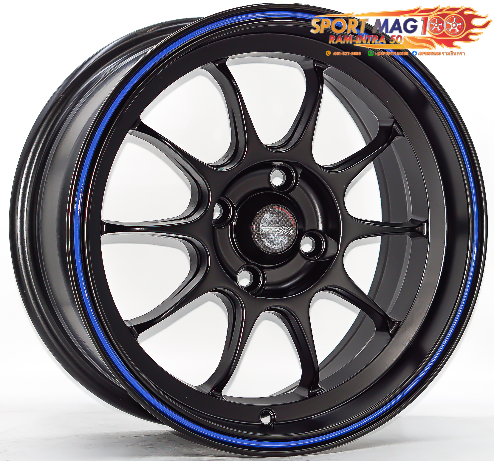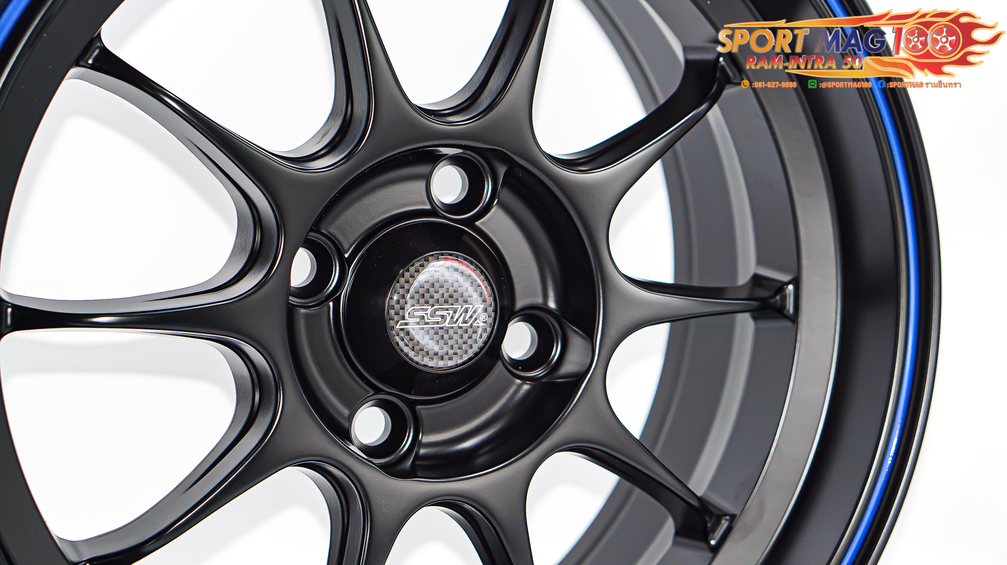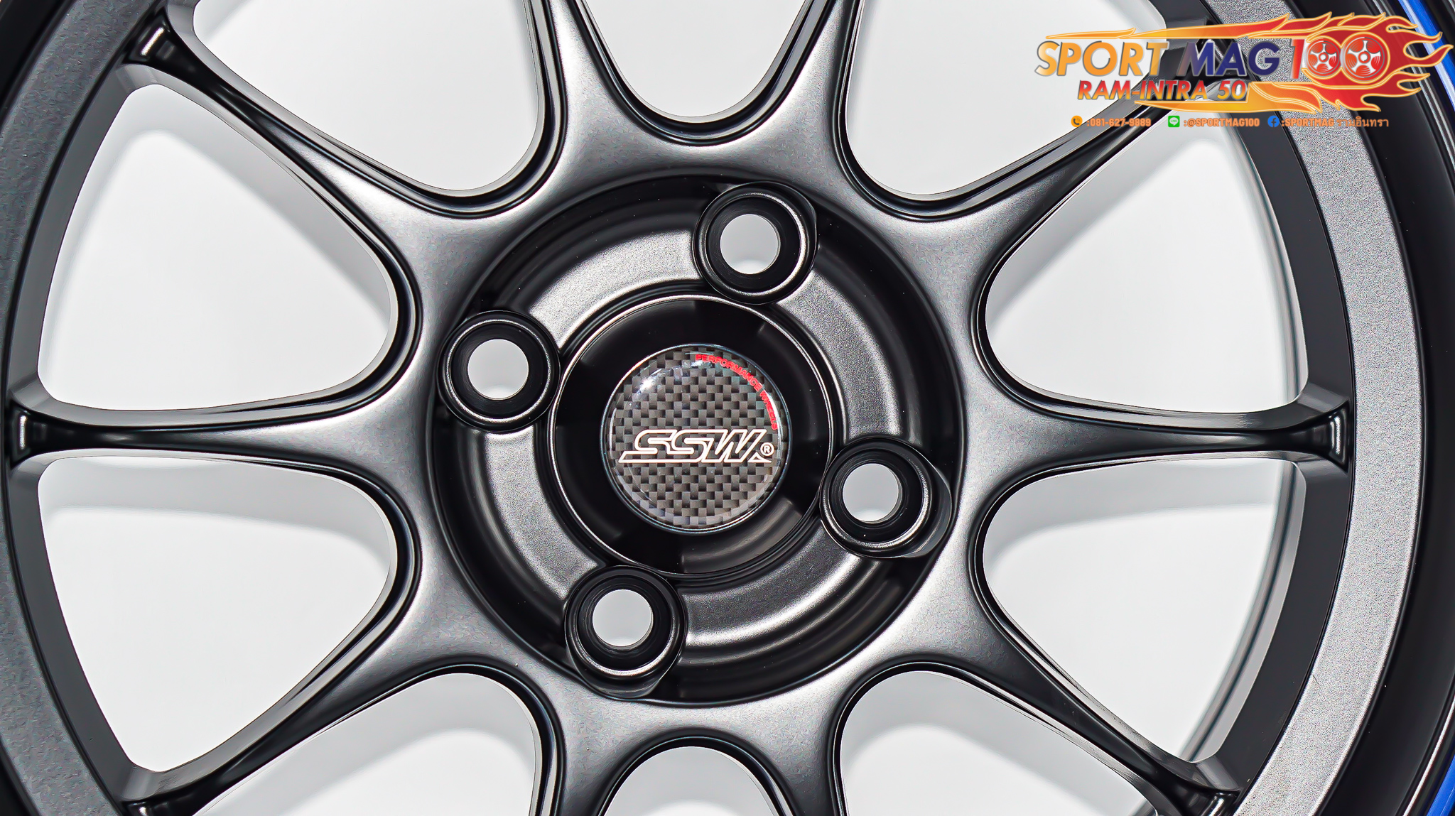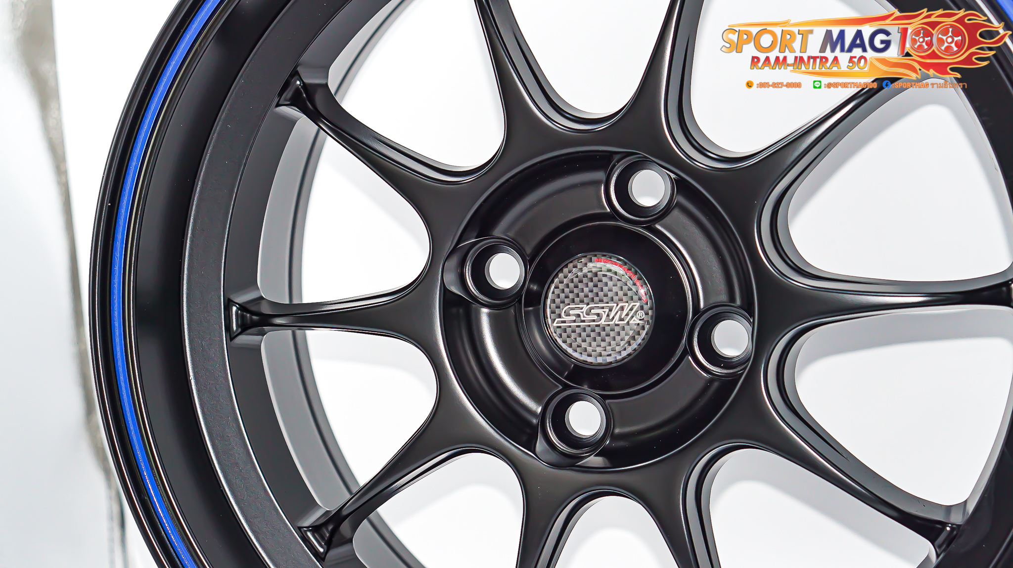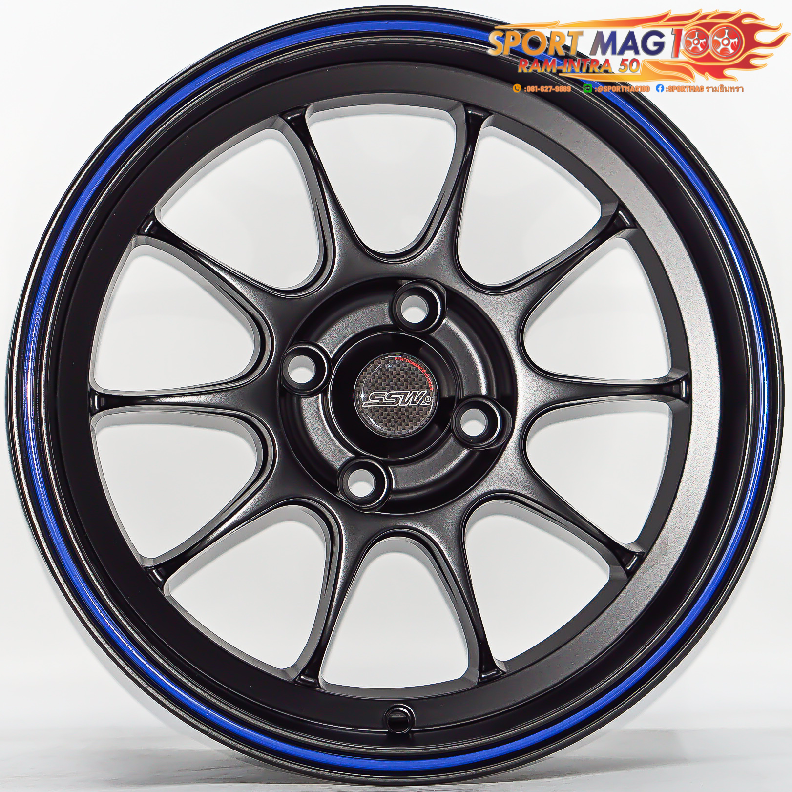 ล้อแม็กใหม่ SSW SC55 ขอบ15นิ้ว กว้าง7นิ้ว 4รู100 Offset32 สีดำเส้นน้ำเงิน