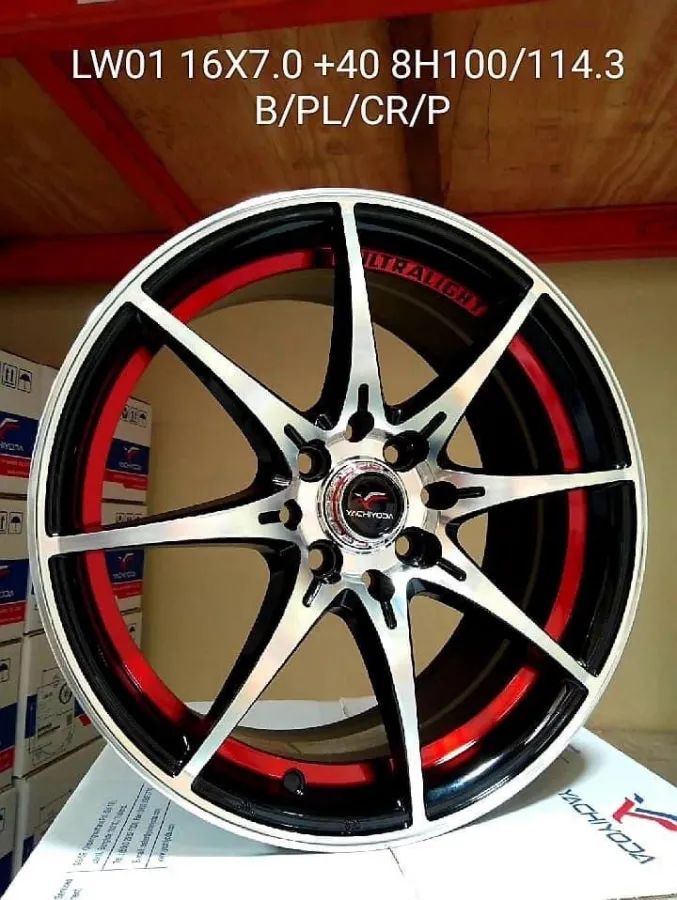 ล้อแม็ก Yachi Lw01 4รู100/114 ET40 ดำเงาอันเดอร์คัตแดง กว้าง7 ขอบ16นิ้ว