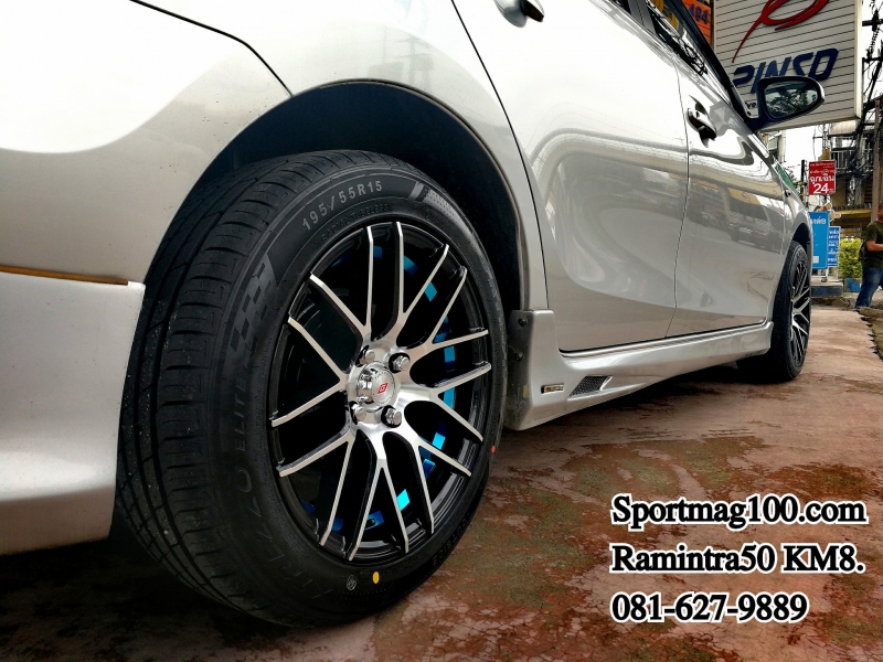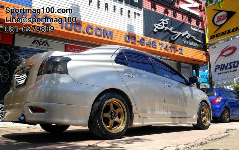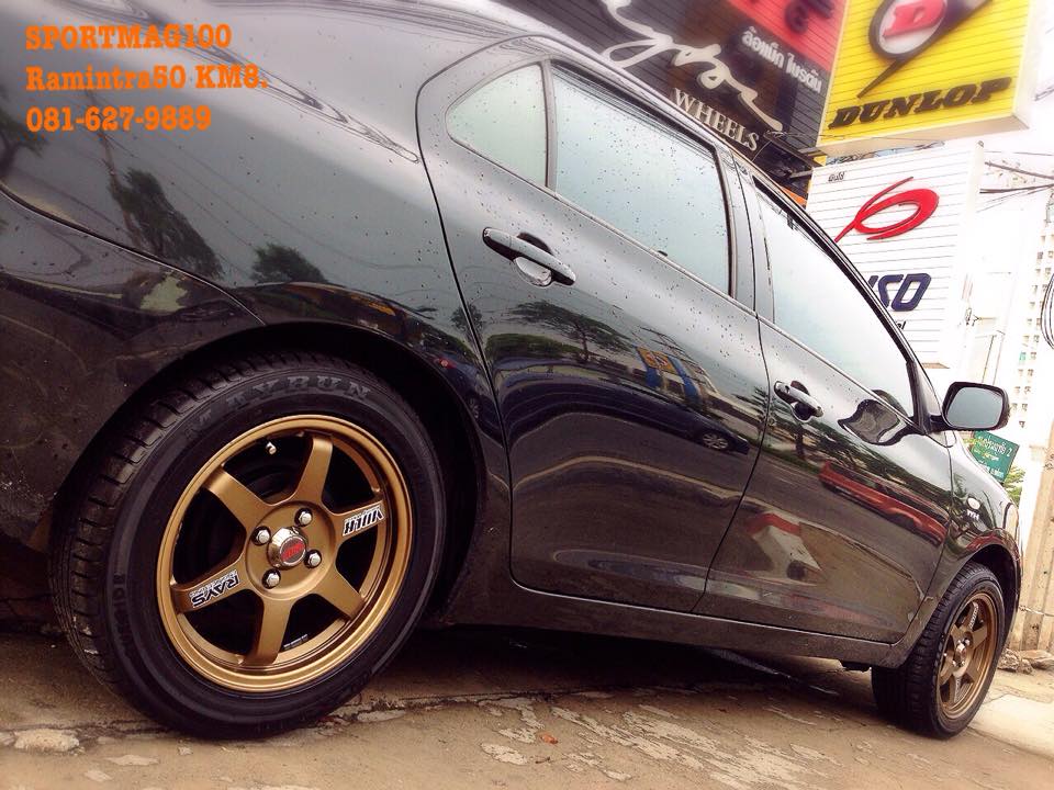 สเปคAkina K1 ขนาด6.5-15นิ้ว ET40 ใส่กับNewVios ก็ออกมาประมาณนี้